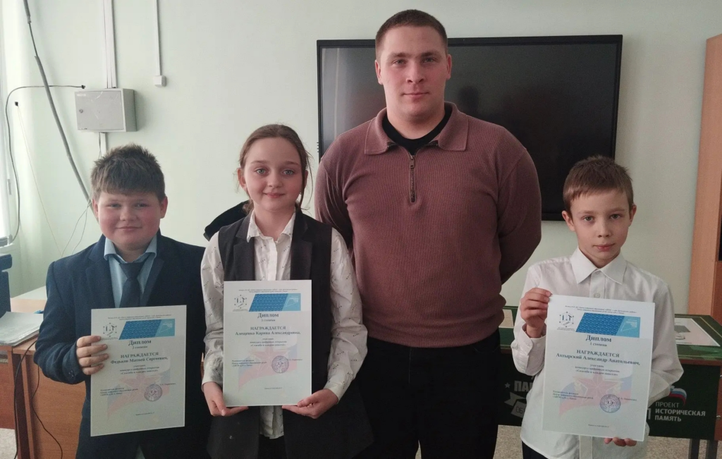 πΠΠ΅ΡΠ²ΡΡ ΡΠ°ΡΡΡ Π·Π°Π½ΡΡΠΈΡ Π±ΡΠ»Π° ΠΏΠΎΡΠ²ΡΡΠ΅Π½Π° ΠΏΠΎΠ΄Π²Π΅Π΄Π΅Π½ΠΈΡ ΠΈΡΠΎΠ³ΠΎΠ² ΠΊΠΎΠ½ΠΊΡΡΡΠ° Β«Π‘ΠΏΠ°ΡΠΈΠ±ΠΎ Π² ΠΊΠ°ΠΆΠ΄ΠΎΠΌ ΠΏΠΈΠΊΡΠ΅Π»Π΅Β» ΠΊΠΎ ΠΠ½Ρ Π·Π°ΡΠΈΡΠ½ΠΈΠΊΠ° ΠΡΠ΅ΡΠ΅ΡΡΠ²Π°. Π Π΅Π±ΡΡΠ° ΠΏΠΎΠ»ΡΡΠΈΠ»ΠΈ Π·Π°ΡΠ»ΡΠΆΠ΅Π½Π½ΡΠ΅ Π΄ΠΈΠΏΠ»ΠΎΠΌΡ. π