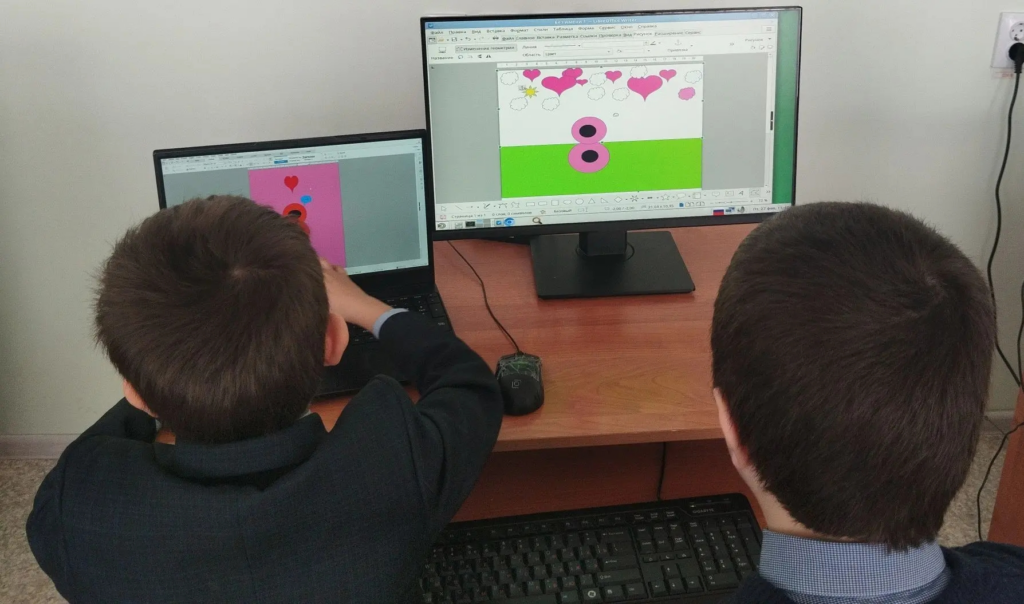 πΠΡΠ½ΠΎΠ²Π½ΠΎΠΉ ΠΆΠ΅ ΡΠ΅ΠΌΠΎΠΉ ΡΡΠΎΠΊΠ° ΡΡΠ°Π»Π° ΠΏΠΎΠ΄Π³ΠΎΡΠΎΠ²ΠΊΠ° ΠΊ ΠΠ΅ΠΆΠ΄ΡΠ½Π°ΡΠΎΠ΄Π½ΠΎΠΌΡ ΠΆΠ΅Π½ΡΠΊΠΎΠΌΡ Π΄Π½Ρ. ΠΠΎΠ΄ ΡΡΡΠΊΠΈΠΌ ΡΡΠΊΠΎΠ²ΠΎΠ΄ΡΡΠ²ΠΎΠΌ Π½Π°ΡΡΠ°Π²Π½ΠΈΠΊΠΎΠ² ΠΡΠΎΡΠΎΠΏΠΎΠΏΠΎΠ²Π° Π.Π. ΠΈ ΠΠΈΡΠΎΡΠ½ΠΈΠΊΠΎΠ²ΠΎΠΉ Π.Π., ΠΊΠΎΡΠΎΡΡΠ΅ Π΄ΠΎΡΡΡΠΏΠ½ΠΎ ΠΈ ΠΏΠΎΠ½ΡΡΠ½ΠΎ ΠΎΠ±ΡΡΡΠ½ΠΈΠ»ΠΈ Π°Π»Π³ΠΎΡΠΈΡΠΌΡ ΡΠ°Π±ΠΎΡΡ, ΡΠΊΠΎΠ»ΡΠ½ΠΈΠΊΠΈ ΠΏΡΠΈΡΡΡΠΏΠΈΠ»ΠΈ ΠΊ ΡΠΎΠ·Π΄Π°Π½ΠΈΡ Π°Π²ΡΠΎΡΡΠΊΠΈΡ ΠΎΡΠΊΡΡΡΠΎΠΊ Π² Π³ΡΠ°ΡΠΈΡΠ΅ΡΠΊΠΎΠΌ ΡΠ΅Π΄Π°ΠΊΡΠΎΡΠ΅.ππ»